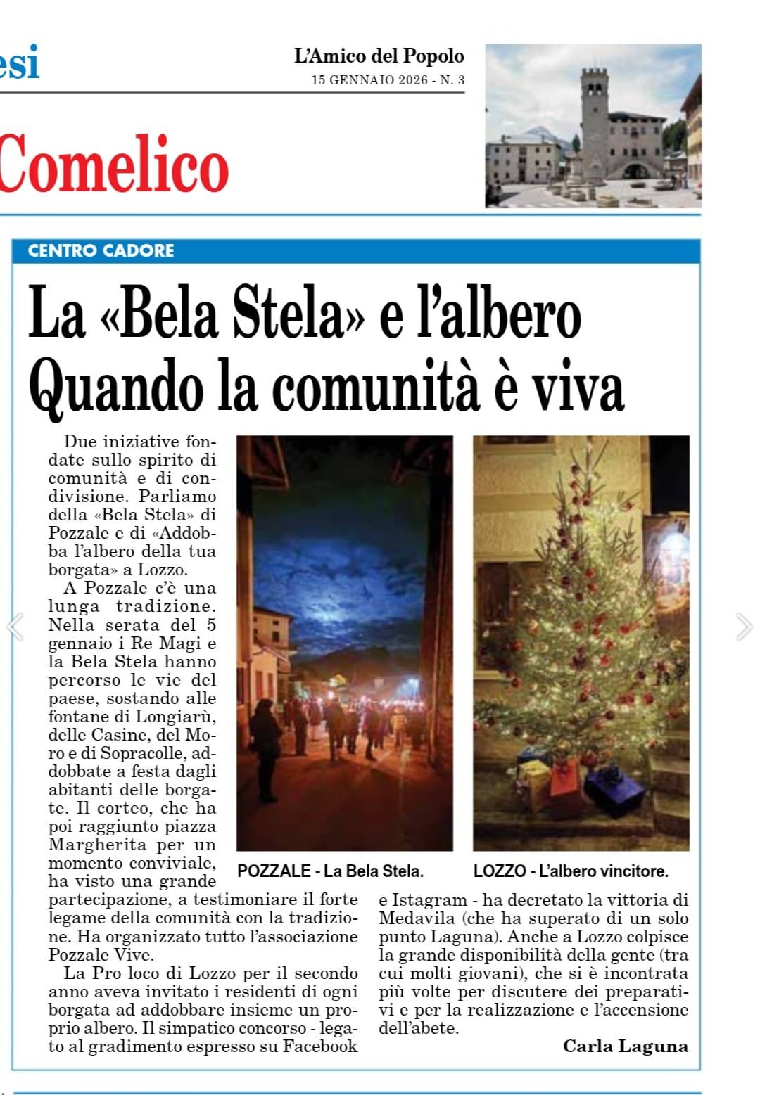 Due iniziative fondate sullo spirito di comunità e di condivisione. Parliamo della «Bela Stela» di Pozzale e di «Addobba l'albero della tua borgata» a Lozzo. A Pozzale c'è una lunga tradizione. Nella serata del 5 gennaio i Re Magi e la Bela Stela hanno percorso...